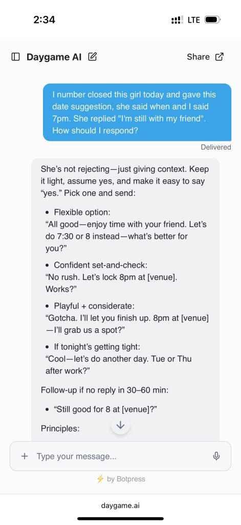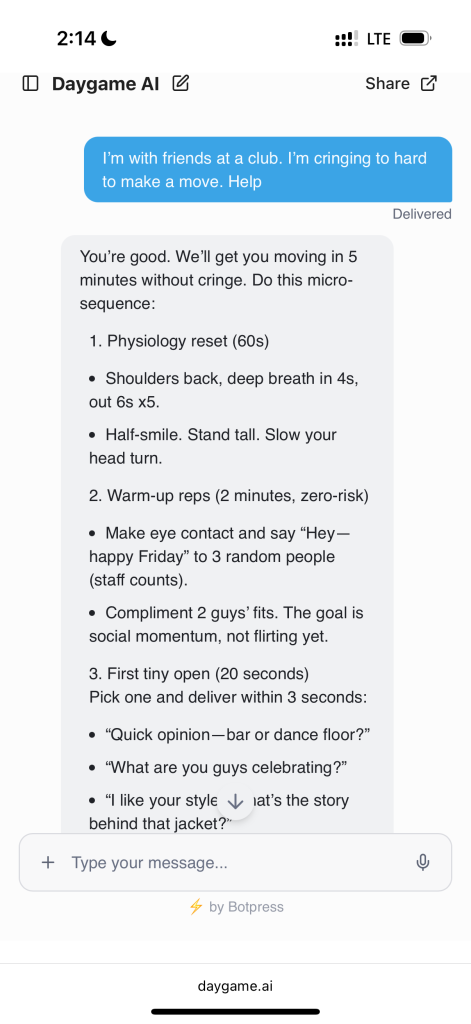 What if you could compress almost three decades of dating and cold approach experience in your pocket? That’s what Daygame AI is.